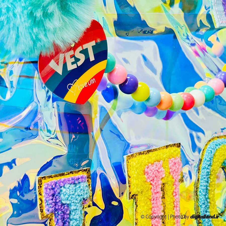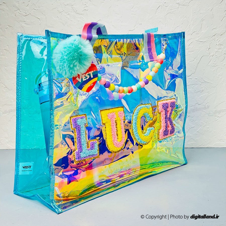 بگ دوشی هلوگرامی همراه با بند و یک پوم پوم با مزه