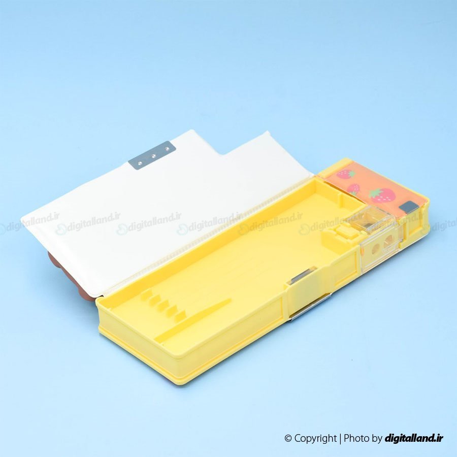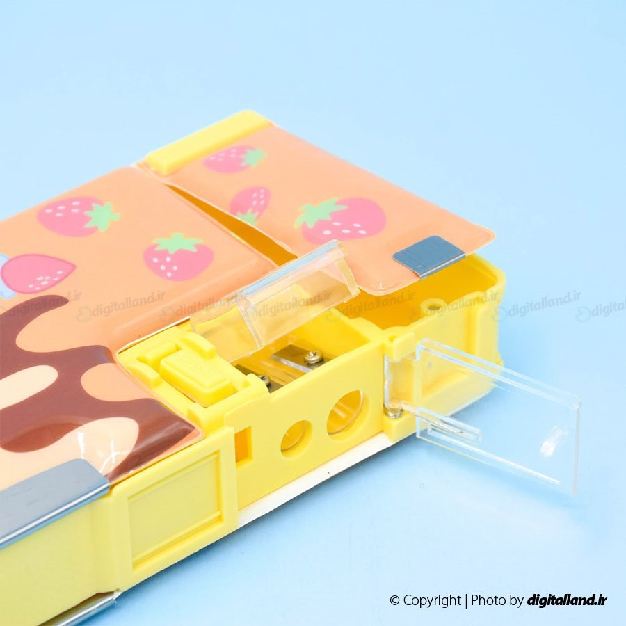 -دارای دو تراش در سایزهای کوچک و بزرگ-دارای یک محفظه کوچک بالای جامدادی-دارای دو محفظه از بالا و پایین