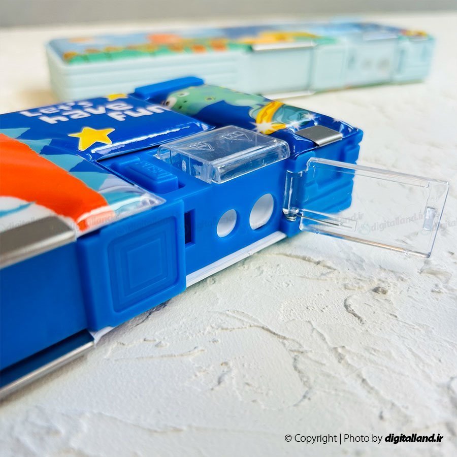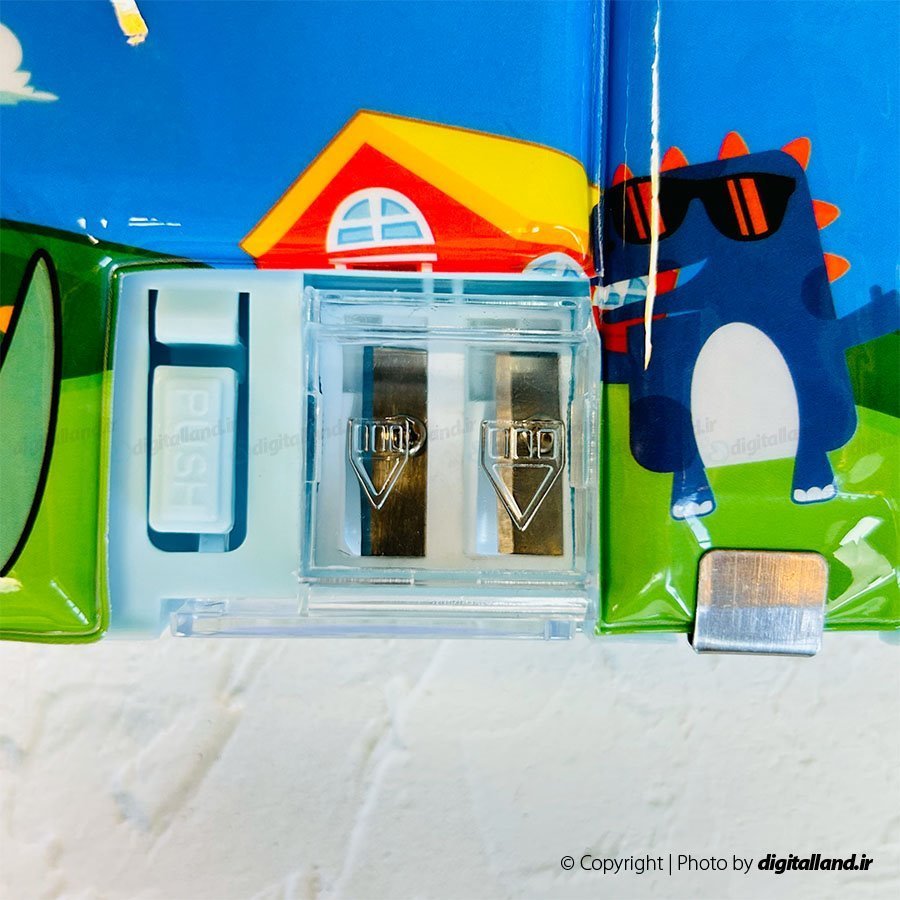 -دارای دو تراش در سایزهای بزرگ و کوچک-دارای یک محفظه کوچک در بالای جامدادی-دارای دو محفظه و جای مداد از بالا و پایین