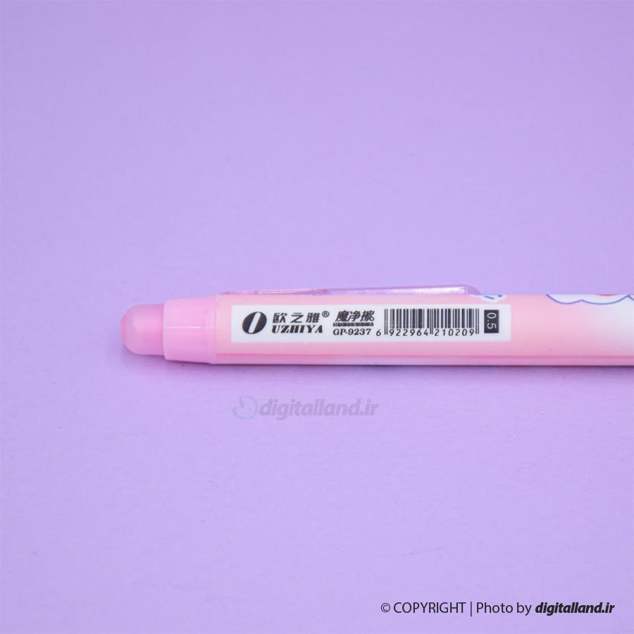 این خودکار بسیار سبک است و طراحی گریپ پایین خودکار در دست گرفتن آن را راحت می کند. مدل این خودکار فشاری است و جوهر بسیار خوبی دارد و در نوشتن هیچ تفاوتی با خودکارهای دیگر ندارد، منتها در انتهای خودکار پاکنی است که فقط جوهر خودش را پاک می کند و هیچ اثری از نوشتن شما باقی نمی گذارد.