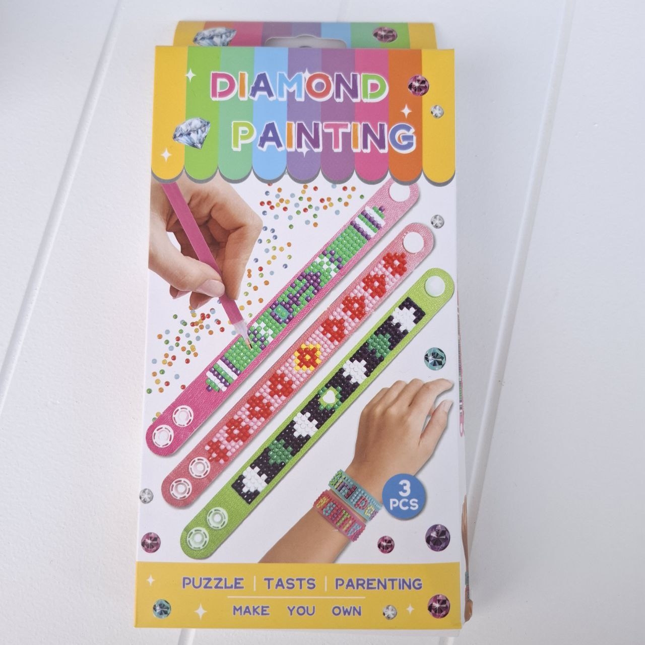 روی سطح دستبندها چسبناک است ،الماسهارو با قلم طبق اعداد روی دستبند میچسبانیم و از قشنگیش روی مچ دستمون لذت می بریم