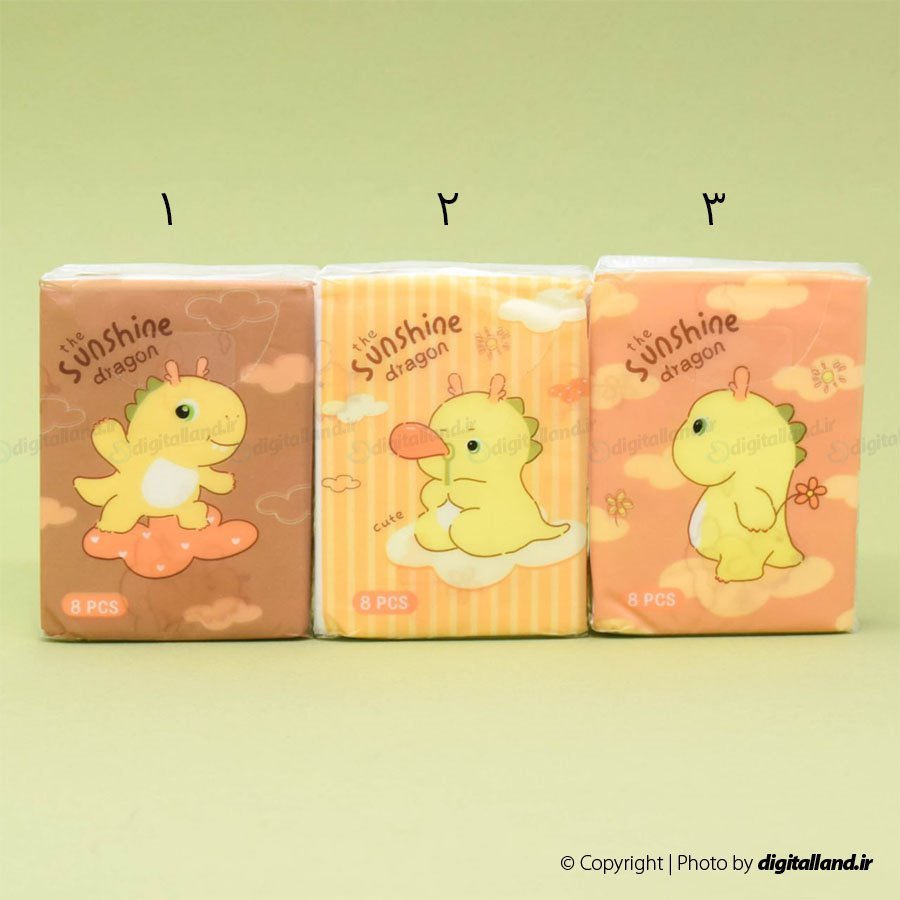 -دارای 8 عدد دستمال-طرحدار و رنگی-سه لایه-هر دستمال 21x21