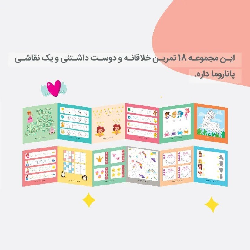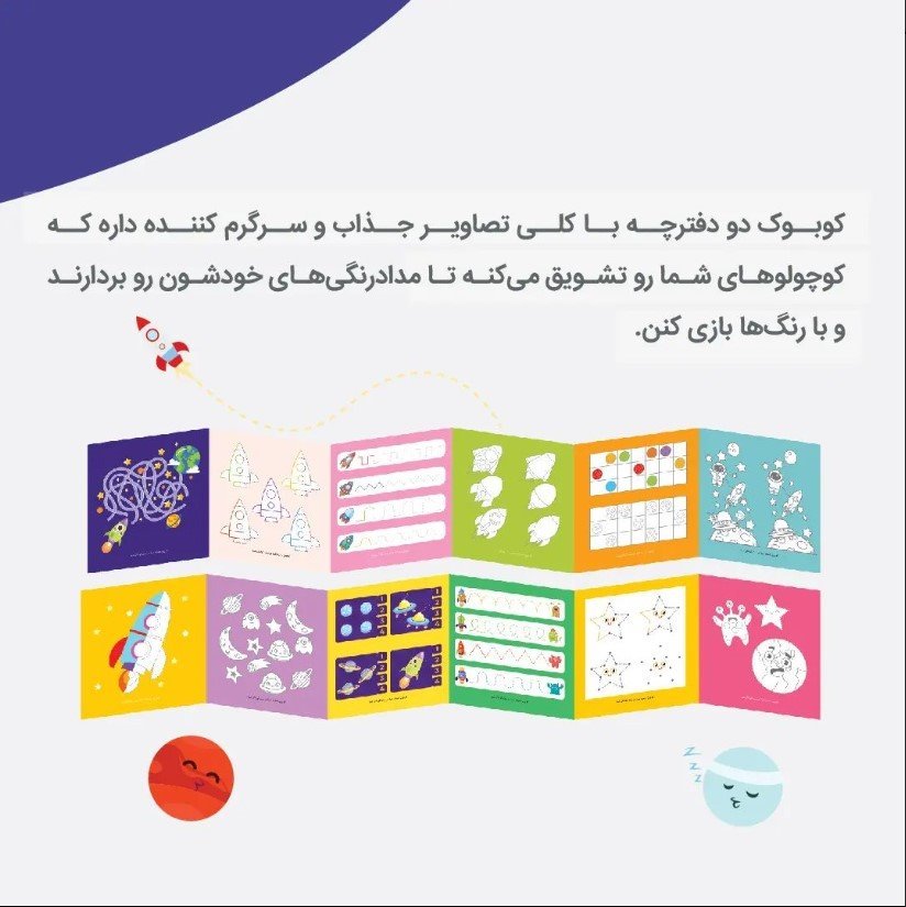 کوبوک دو دفترچه با کلی تصاویر جذاب و سرگرم کننده داره که کوچولوهای شما رو تشویق می کنه تا مداد رنگی های خودشون رو بردارند با رنگ ها بازی کنند. این مجموعه 18 تمرین خلاقانه و دوست داشتنی و یک نقاشی پاناروما داره.