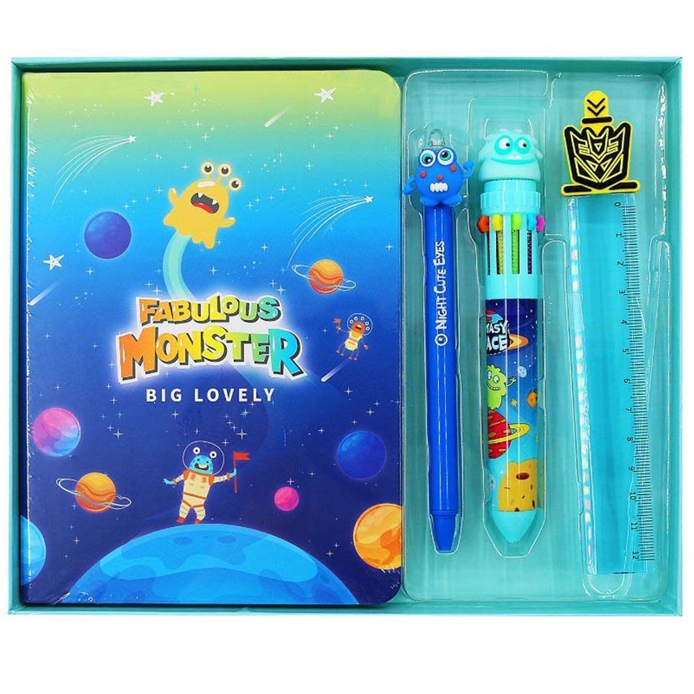 - x1 دفتر یادداشت- x1 خودکار 10 رنگ- x1 خودکار فشاری- x1 خط کش