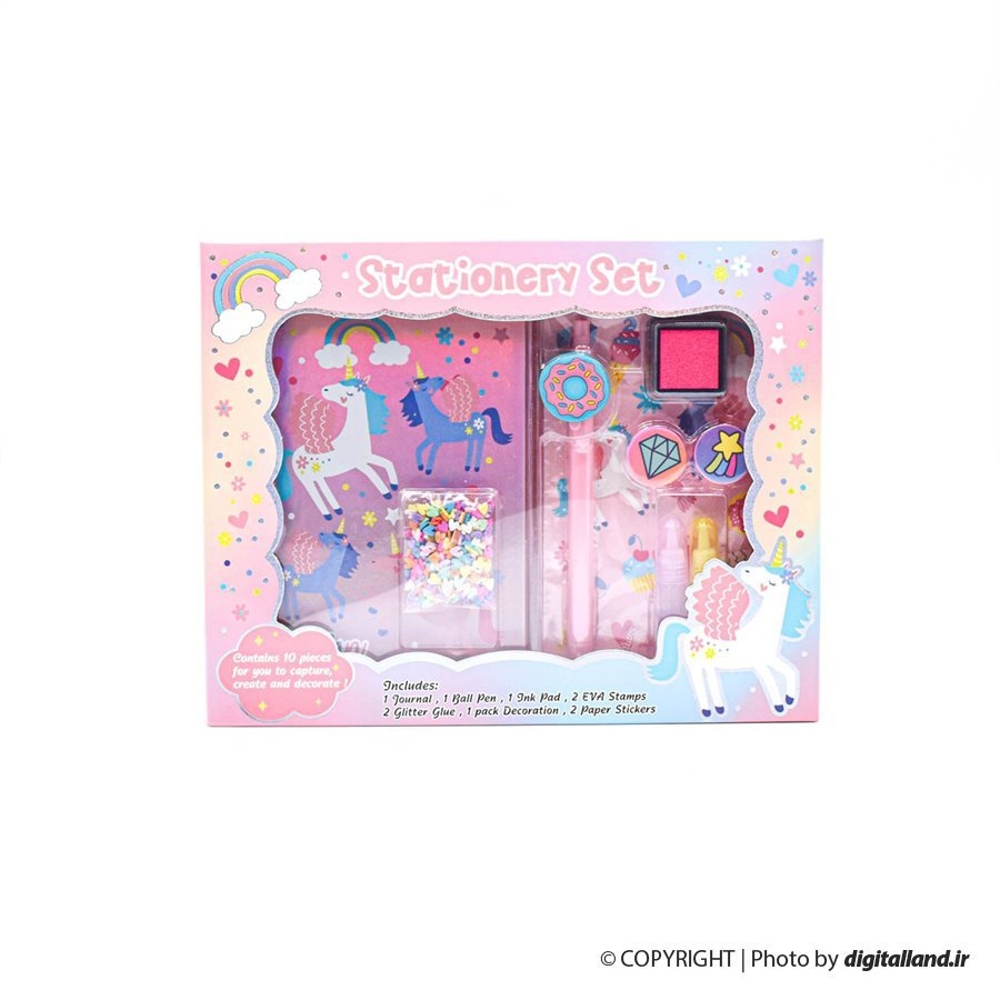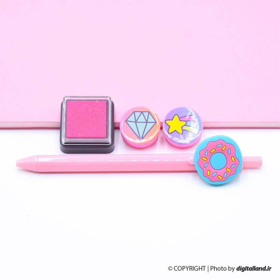 - x1 ژورنال- x1 خودکار- x1 استامپ- x1 پک دکوریشین- x2 مهر- x2 چسب اکلیلی- x2 برگ استیکر