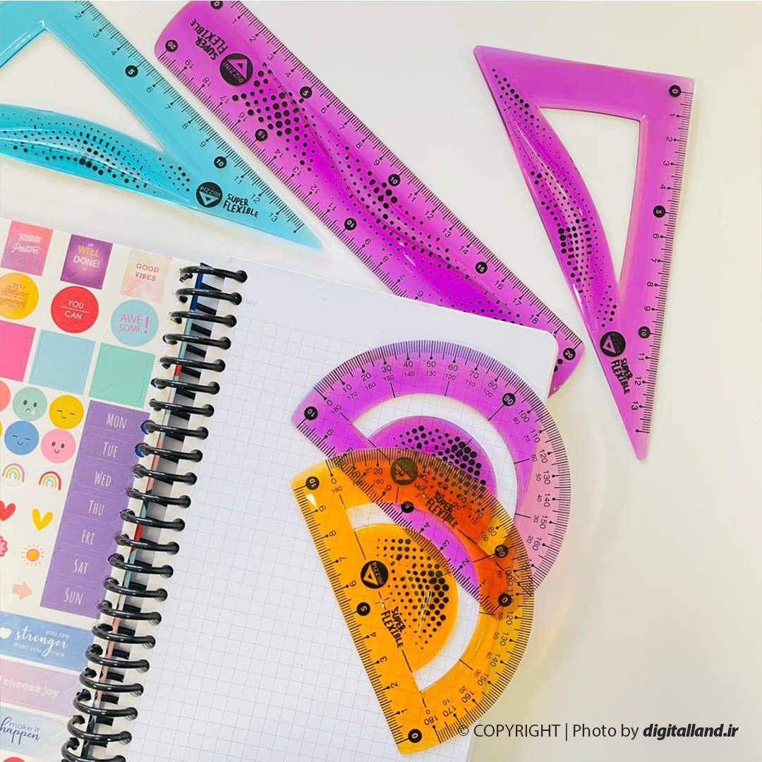- یک عدد خط کش 20 سانتی متر- یک عدد نقاله 10 سانتی متر- یک عدد گونیا 14 سانتی متر