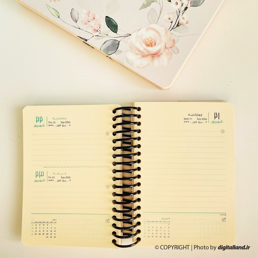 - صحافی سیمی بسیار نرم- دارای کش برای بسته شدن کامل سررسید- دارای صفحه ی 1403 در یک نگاه- دارای صفحه یادداشت تاریخ تولد و روزهای مهم سال- هر ماه دارای صفحه ی تمام ماه در یک نگاه می باشد- روزهای پنجشنبه و جمعه در یک برگه هستند