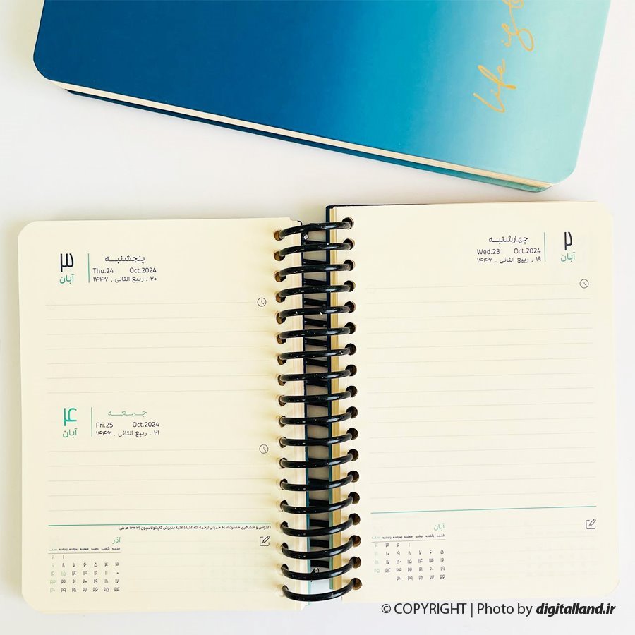 - صحافی سیمی بسیار نرم- دارای کش برای بسته شدن کامل سررسید- دارای صفحه ی 1403 در یک نگاه- دارای صفحه یادداشت تاریخ تولد و روزهای مهم سال- هر ماه دارای صفحه ی تمام ماه در یک نگاه می باشد- روزهای پنجشنبه و جمعه در یک برگه هستند