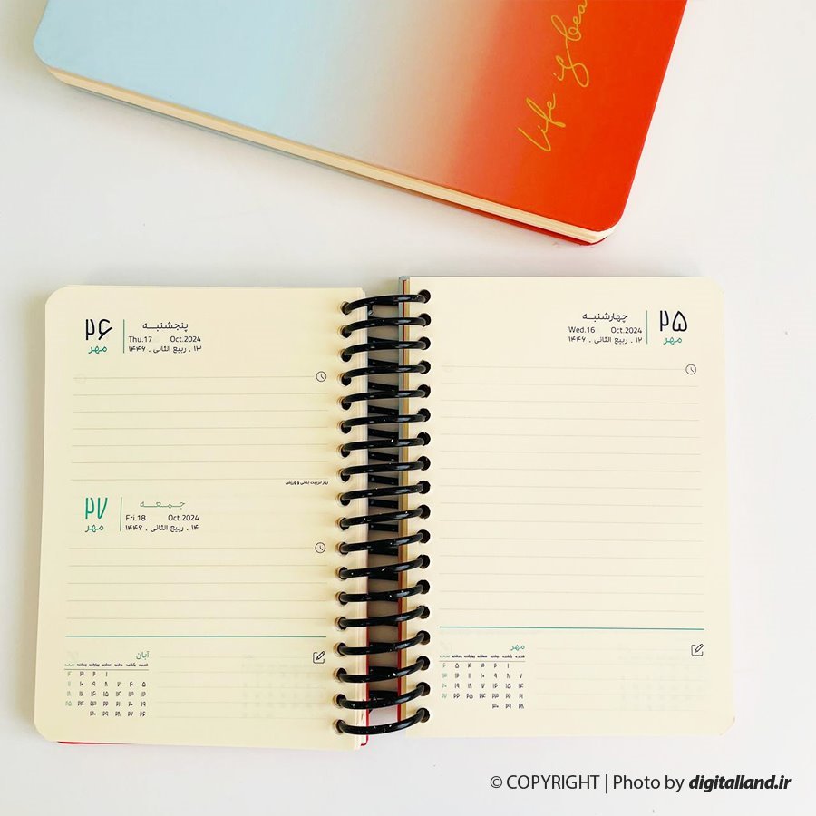 - صحافی سیمی بسیار نرم- دارای کش برای بسته شدن کامل سررسید- دارای صفحه ی 1403 در یک نگاه- دارای صفحه یادداشت تاریخ تولد و روزهای مهم سال- هر ماه دارای صفحه ی تمام ماه در یک نگاه می باشد- روزهای پنجشنبه و جمعه در یک برگه هستند