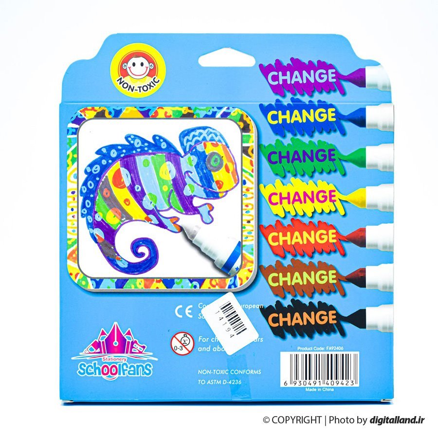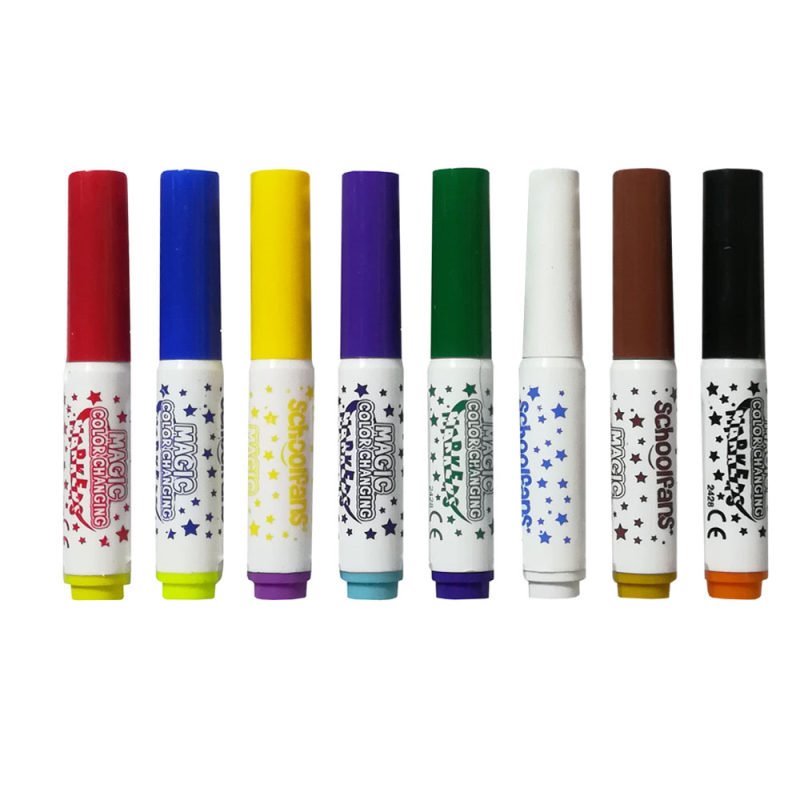 این محصول 7 ماژیک رنگی دارد و یک ماژیک سفید که با کشیدن رنگ سفید روی سایر رنگها، رنگ جدیدی ایجاد می شود
