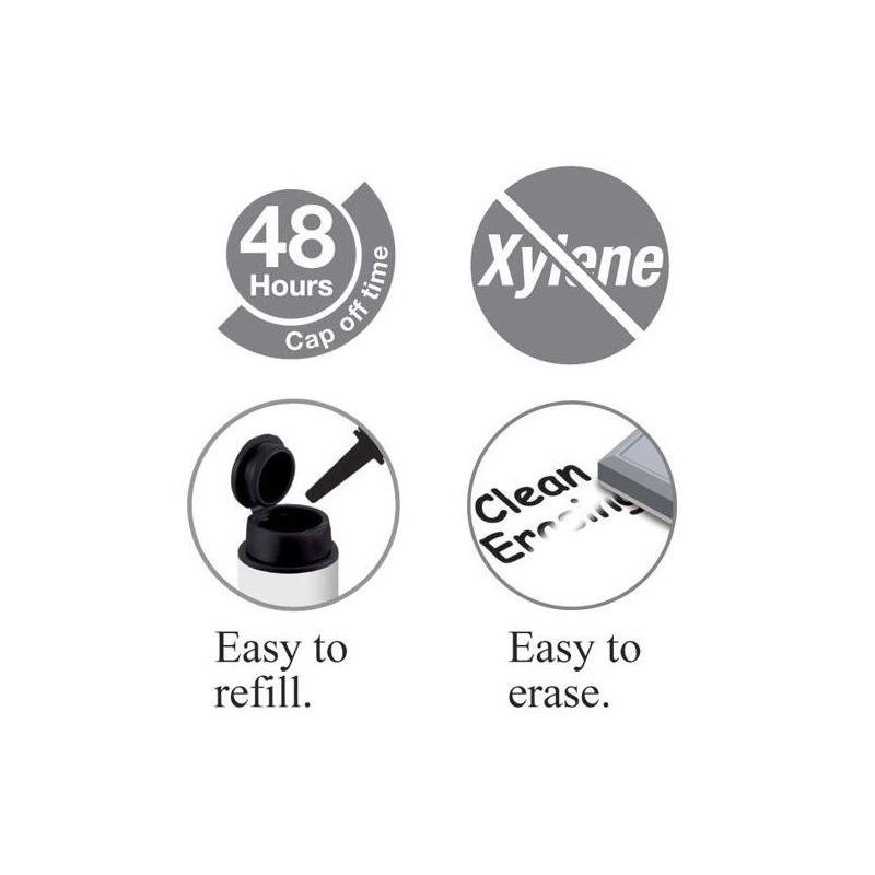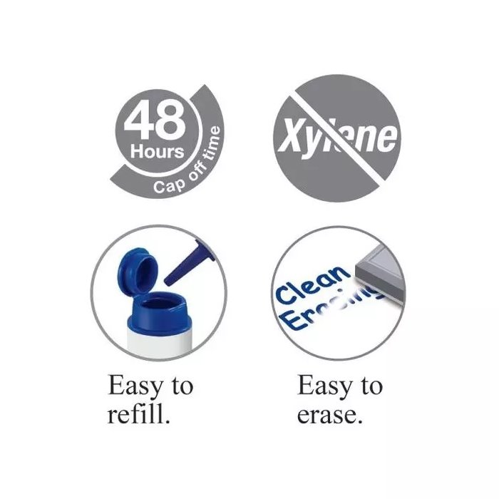 نشانگر تخته وایت برد قابل شارژ با تیرگی جوهر استثنایی و عرض خط 2.25 میلی متری که نوشتار روی تخته سفید را بسیار قابل مشاهده و واضح می کند. نوک گلوله ای بادوام که می تواند برای چندین بار شارژ دوام بیاورد. دارای سیستم پر کردن مجدد راحت. به راحتی حتی بعد از یک هفته پاک می شود.