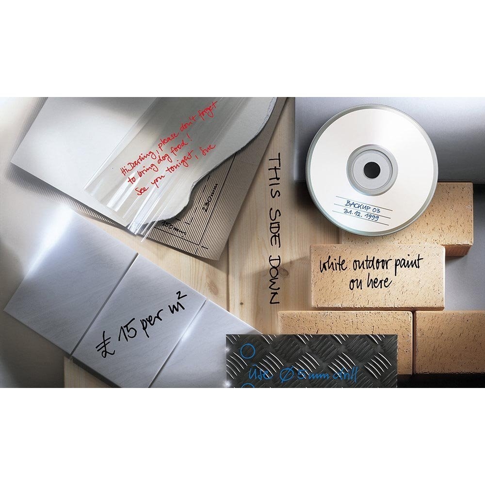 اگر قرار است کار مهمی را انجام دهید، همیشه مطمئن شوید که ابزار شما برای این کار آماده است. چه یک تاجر باشید، چه عاشق DIY یا فقط فردی با چند شغل برای انجام دادن، این محصول کلاسیک شما را ناامید نخواهد کرد. تست شده روی بیش از 1000 سطح. متنی واضح و خوانا می نویسد که دائمی می ماند. این خودکار با داشتن سه پهنای خط (S، F و M)، کارهایی مانند برچسب زدن به عکس ها و سی دی ها یا تهیه شیشه و آجر برای برش را آسان می کند. و از آنجایی که این خودکار نشانگر دائمی حتی در شرایط سخت مانند سرما، گرما و باران قابل اعتماد است، برای استفاده در باغ، گلخانه یا حتی فریزر ایده آل است.
