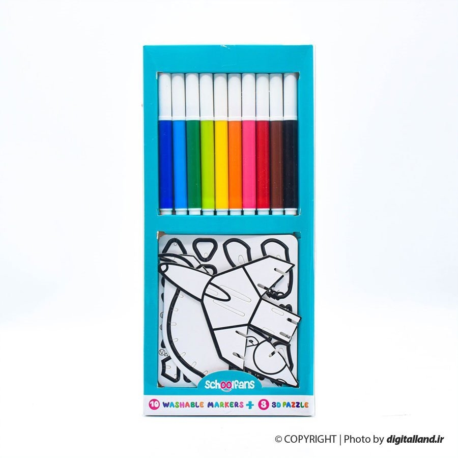 ماژیک 10 رنگ و پازل سه بعدی Schoolfans FA92478