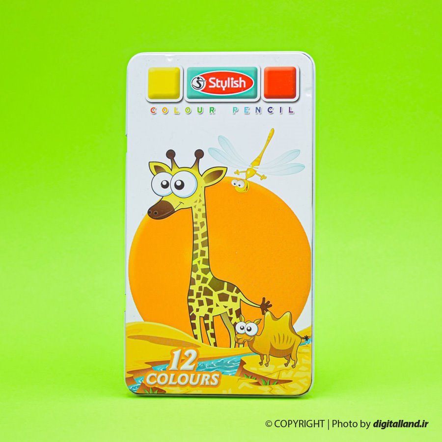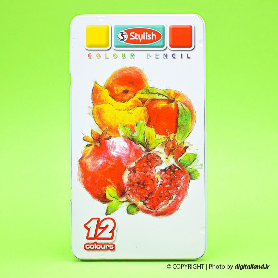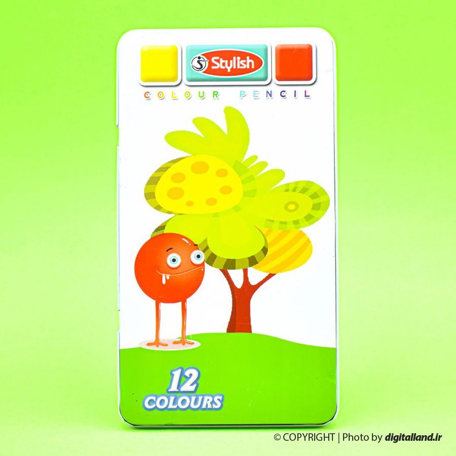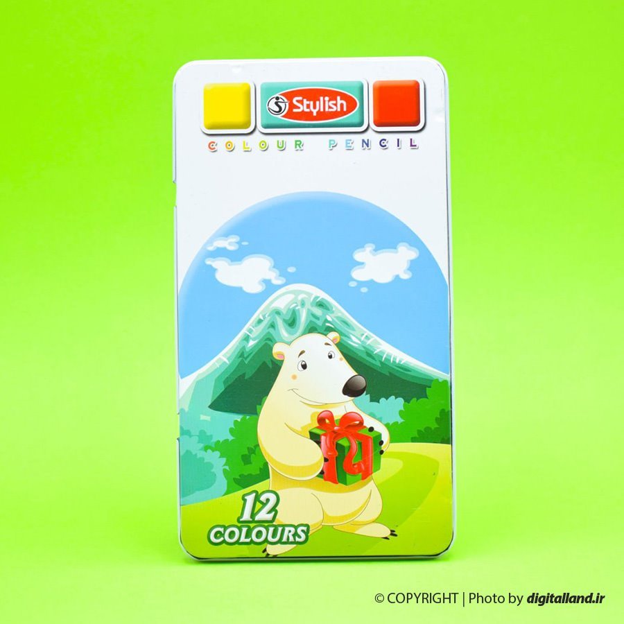 مداد رنگی 12 رنگ جعبه فلزی Stylish