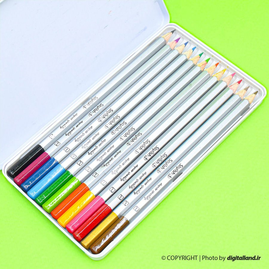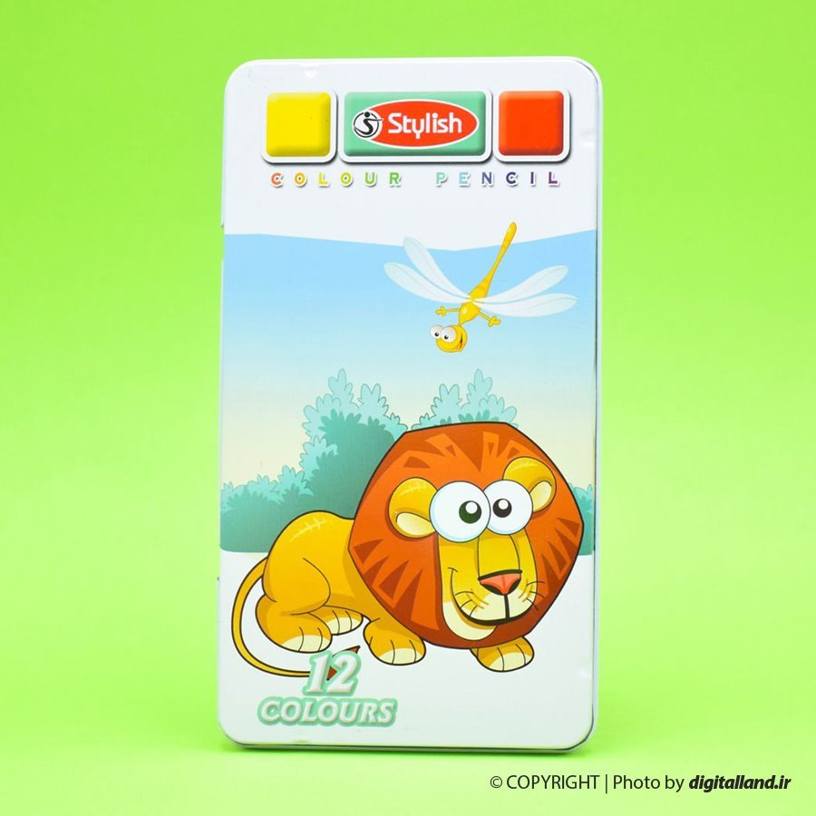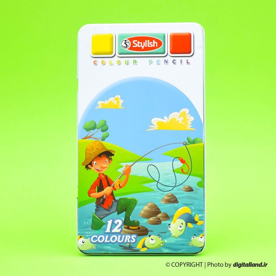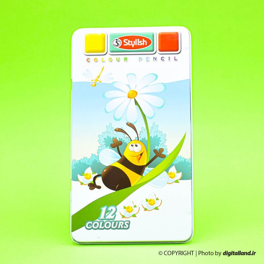مداد رنگی 12 رنگ جعبه فلزی Stylish