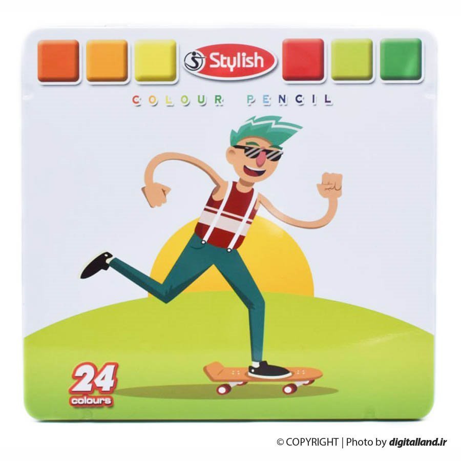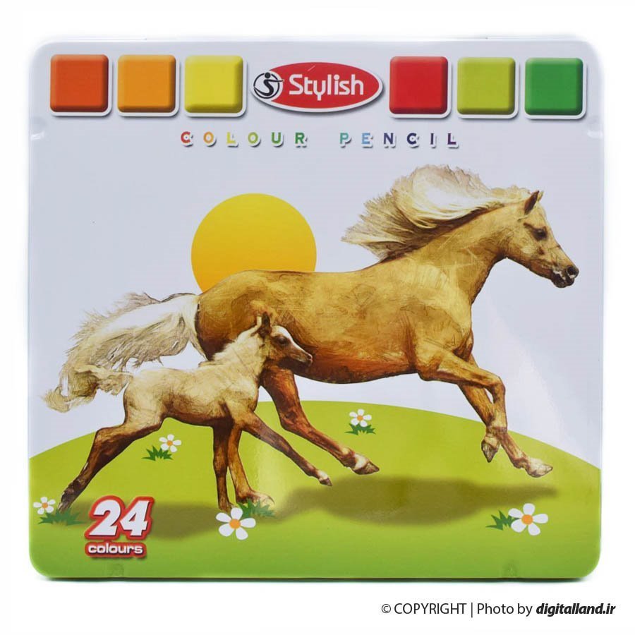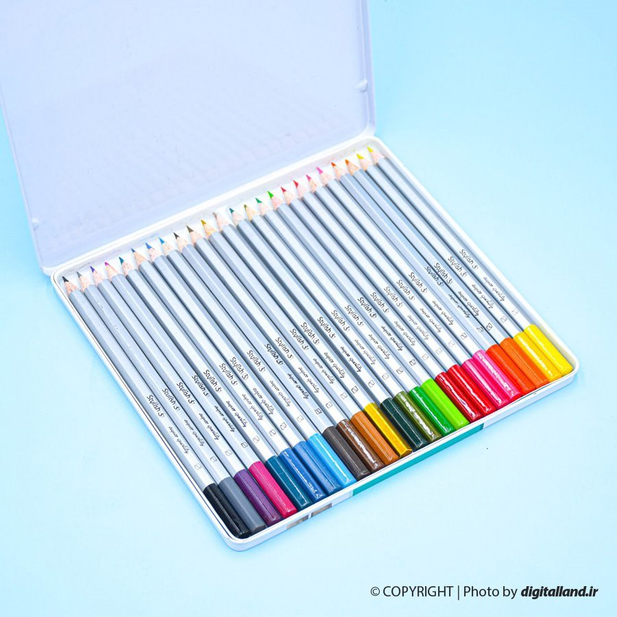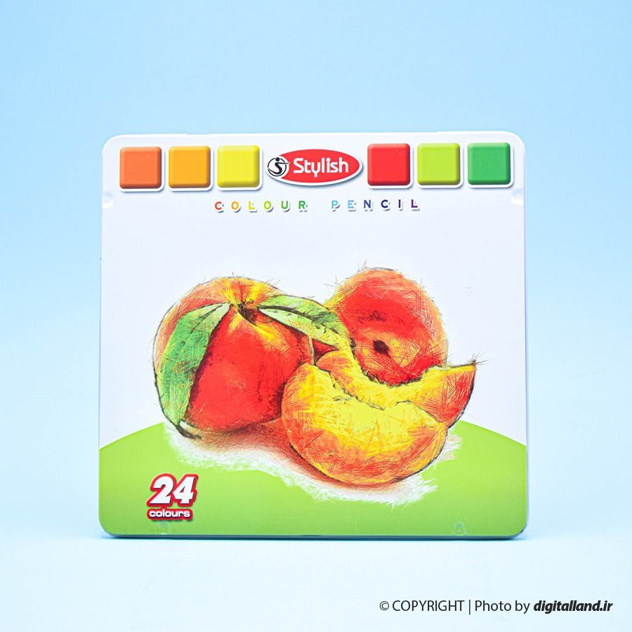 مداد رنگی 24 رنگ جعبه فلزی Stylish