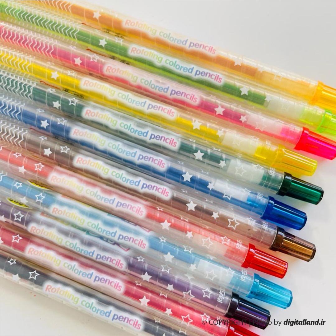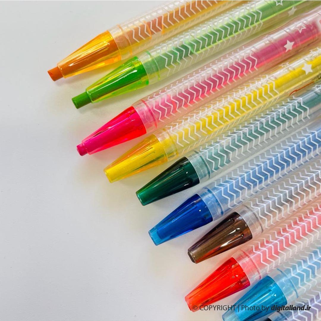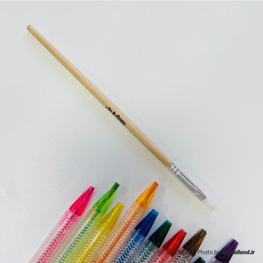 - 12 عدد مداد شمعی پیچی- 1 عدد قلم مو