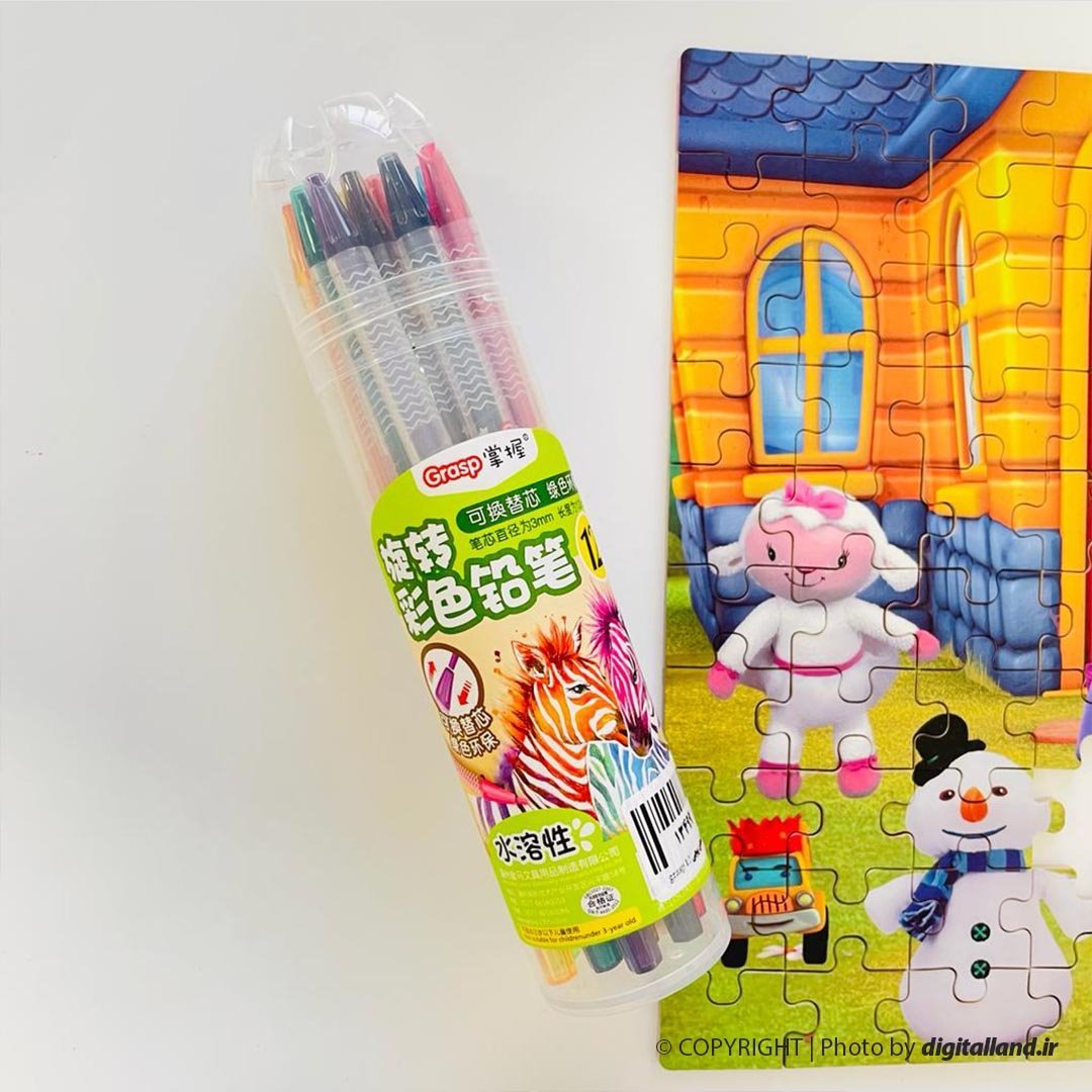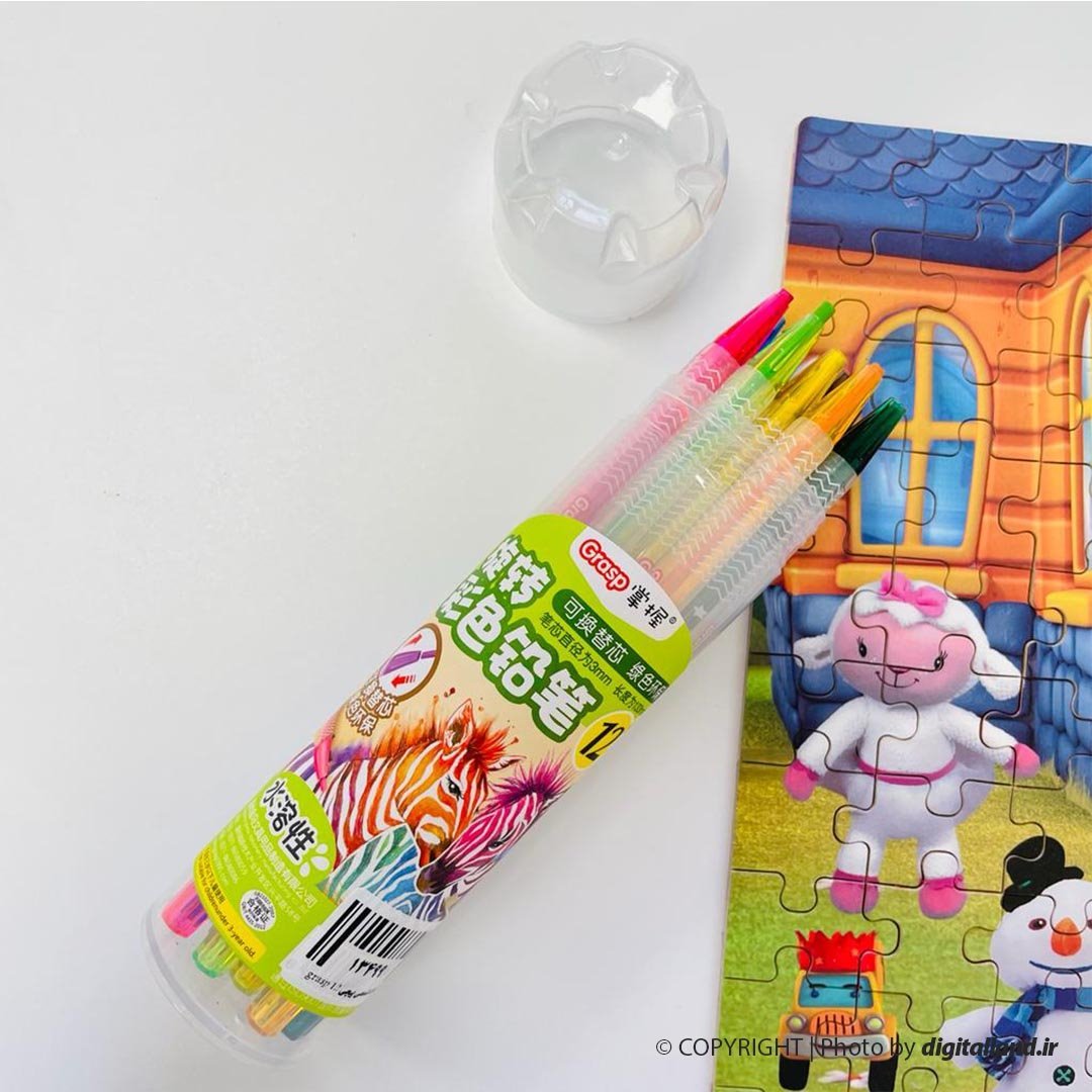 مداد شمعی 12 رنگ پیچی Grasp
