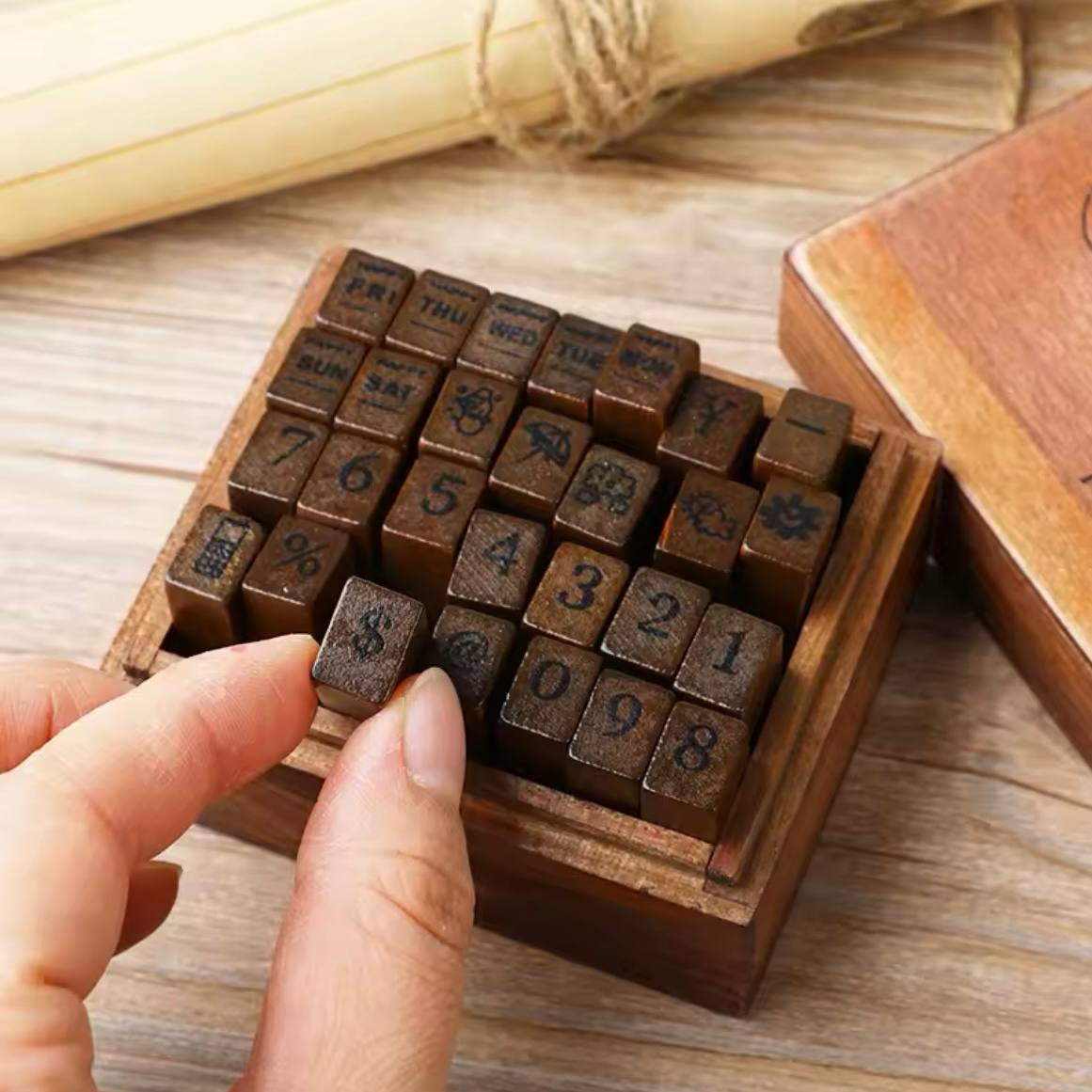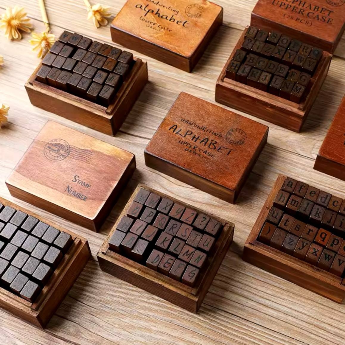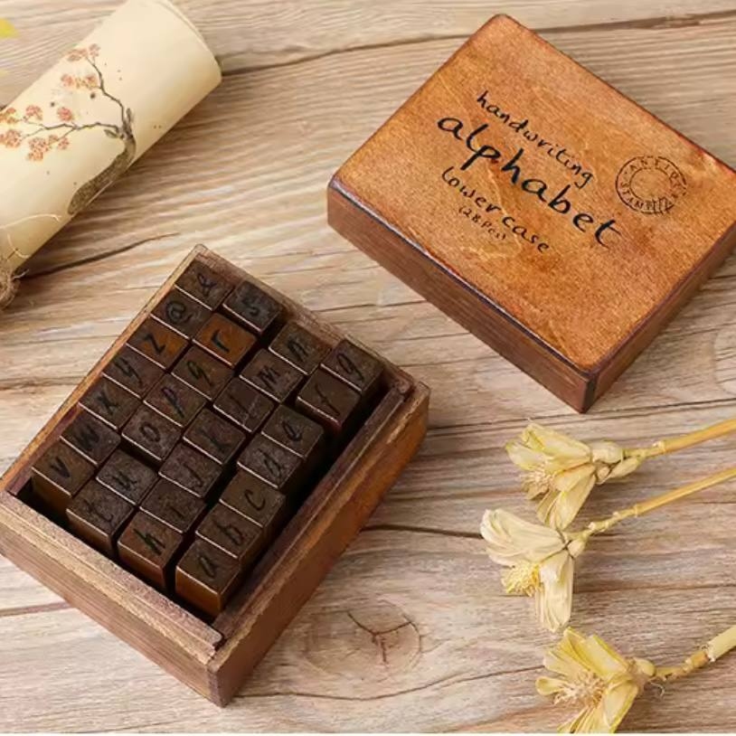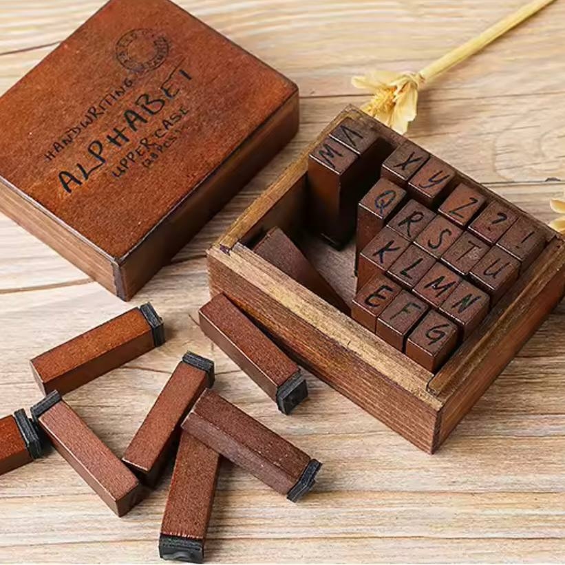 مهر جعبه چوبی بزرگ الفبای لاتین