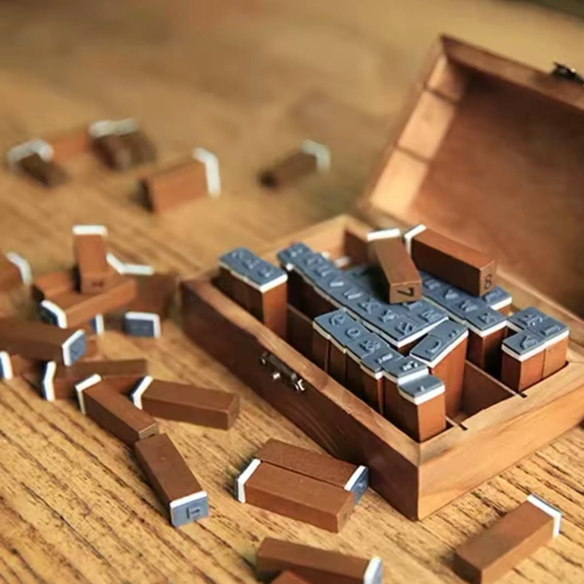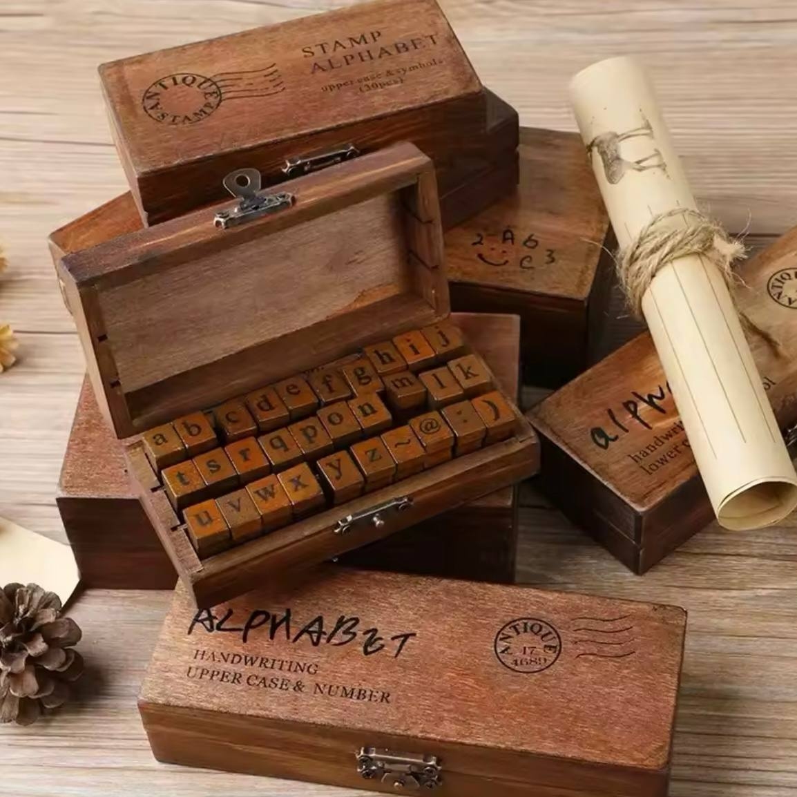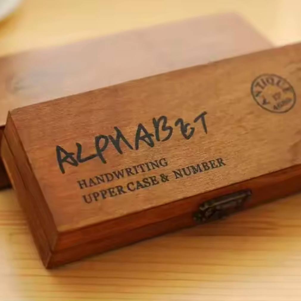 مهر جعبه چوبی بزرگ الفبای لاتین