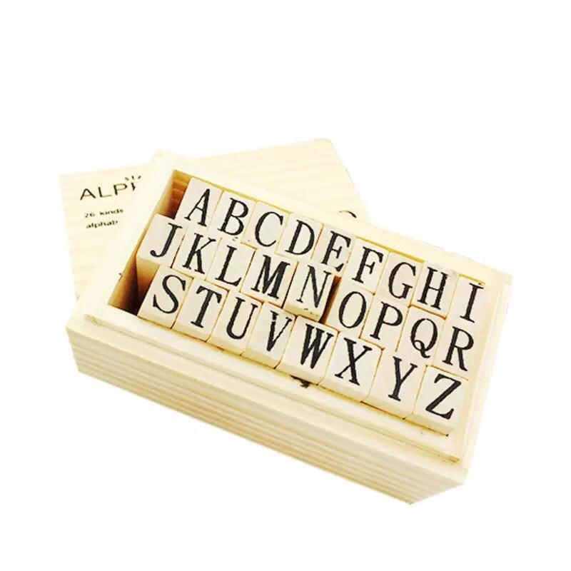 مهر جعبه چوبی بزرگ الفبای لاتین