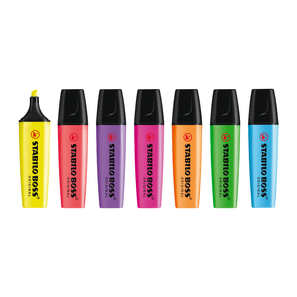 نماد Stabilo Boss که اولین بار در سال 1972 منتشر شد، همچنان یکی از پرفروش ترین هایلایترهای بازار است. طراحی کلاسیک با روندهای فعلی تطبیق داده شده است و در رنگ های متنوع و جذاب موجود است. جوهر مبتنی بر آب می تواند مدت زمان طولانی بدون در پوش خشک نمی شود.