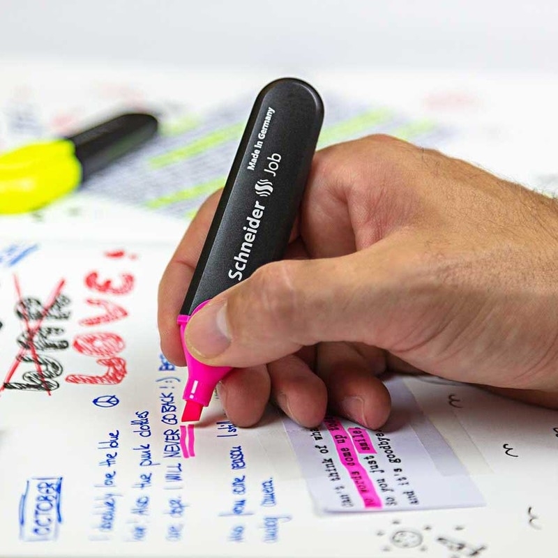 هایلایتر با نوک اسکنه برای دو عرض خط 1+5 میلی متر. جوهر آن حداکثر درخشندگی و پایداری خوب در نور را روی کاغذ معمولی و کپی ارائه می دهد و برای مدرسه، دانشگاه یا اداره ایده‌آل است. این هایلایتر با نوک اسکنه‌ای خود، برای کارهای خلاقانه در بولت ژورنال یا برای خوشنویسی با حروف دستی مناسب است. بدنه پلی پروپیلن ضد تبخیر تضمین می کند که هایلایتر را به مدت 2 سال تازه نگه دارد. این هایلایتر در سال 2013 جوایز معروف طراحی iF و red dot را دریافت کرد. درپوش دارای یک گیره است و به خوبی در انتهای بدنه قرار می گیرد. قلم Job با مخزن جوهر بزرگ خود می تواند بیش از 15000 کلمه را برجسته کند.