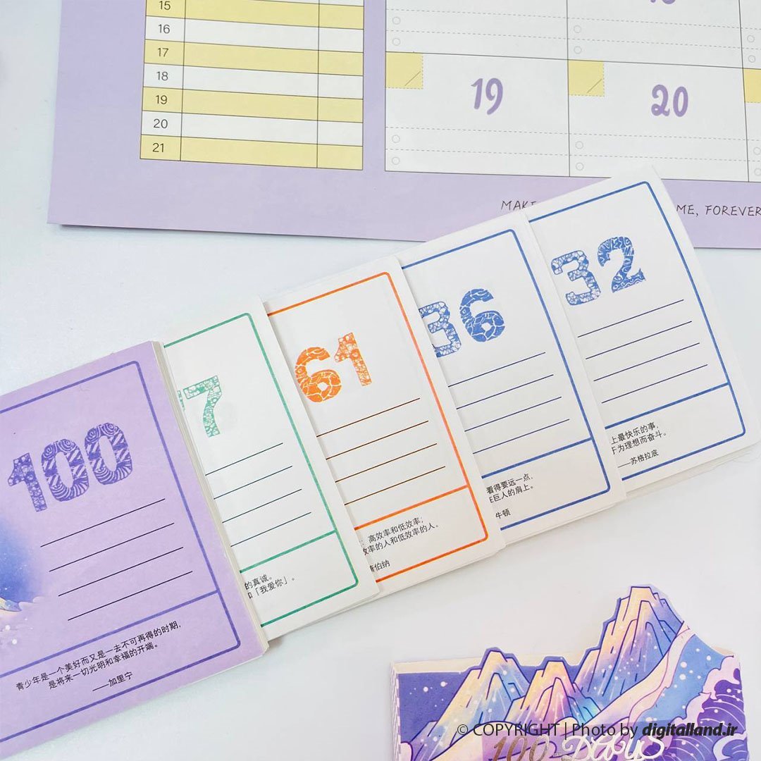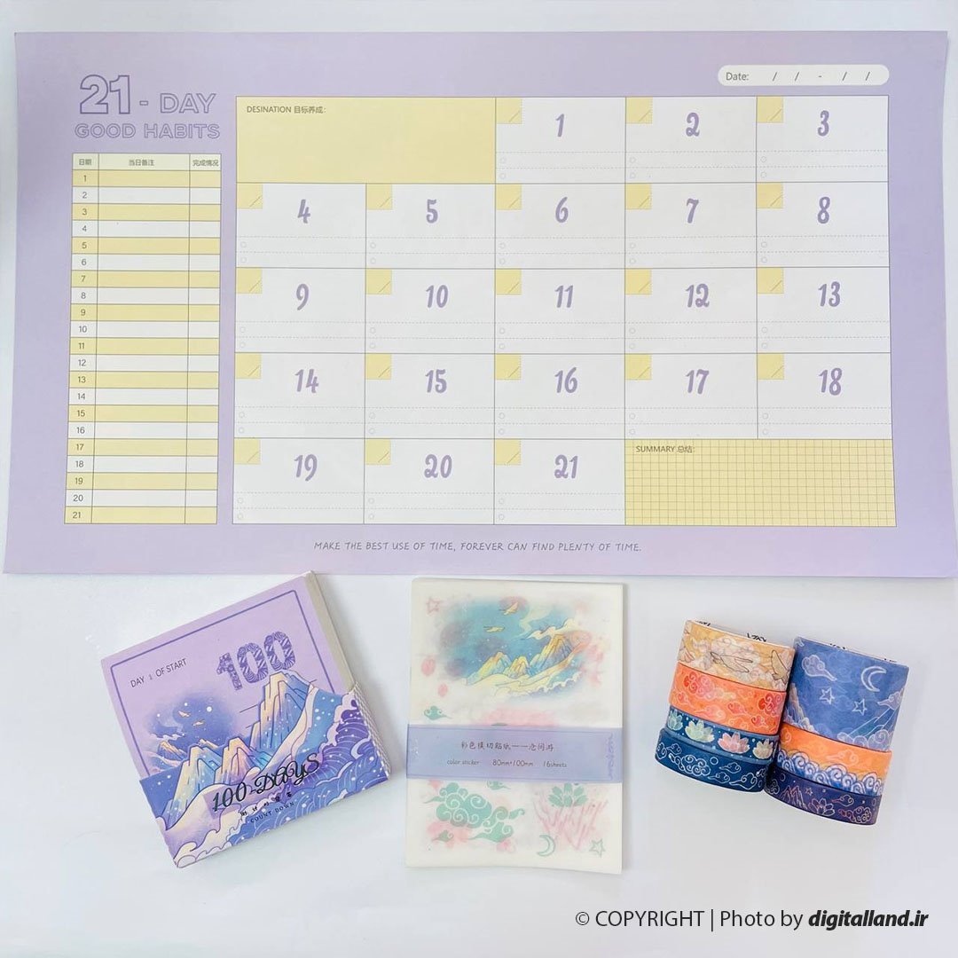 - یادداشت برنامه ریزی 100 روزه- یک عدد پلنر- 7 حلقه چسب واشی- 16 ورق استیکر