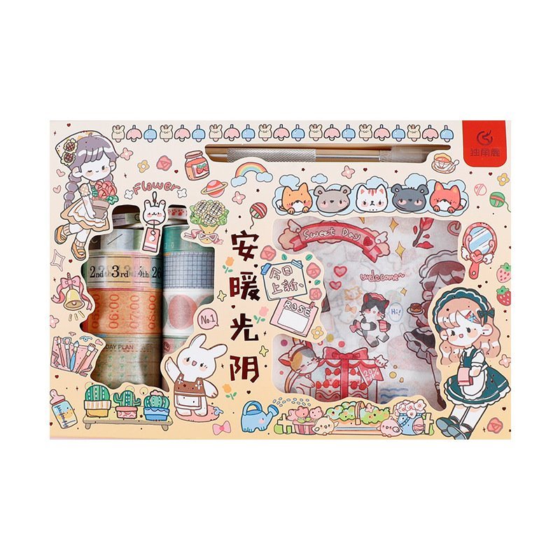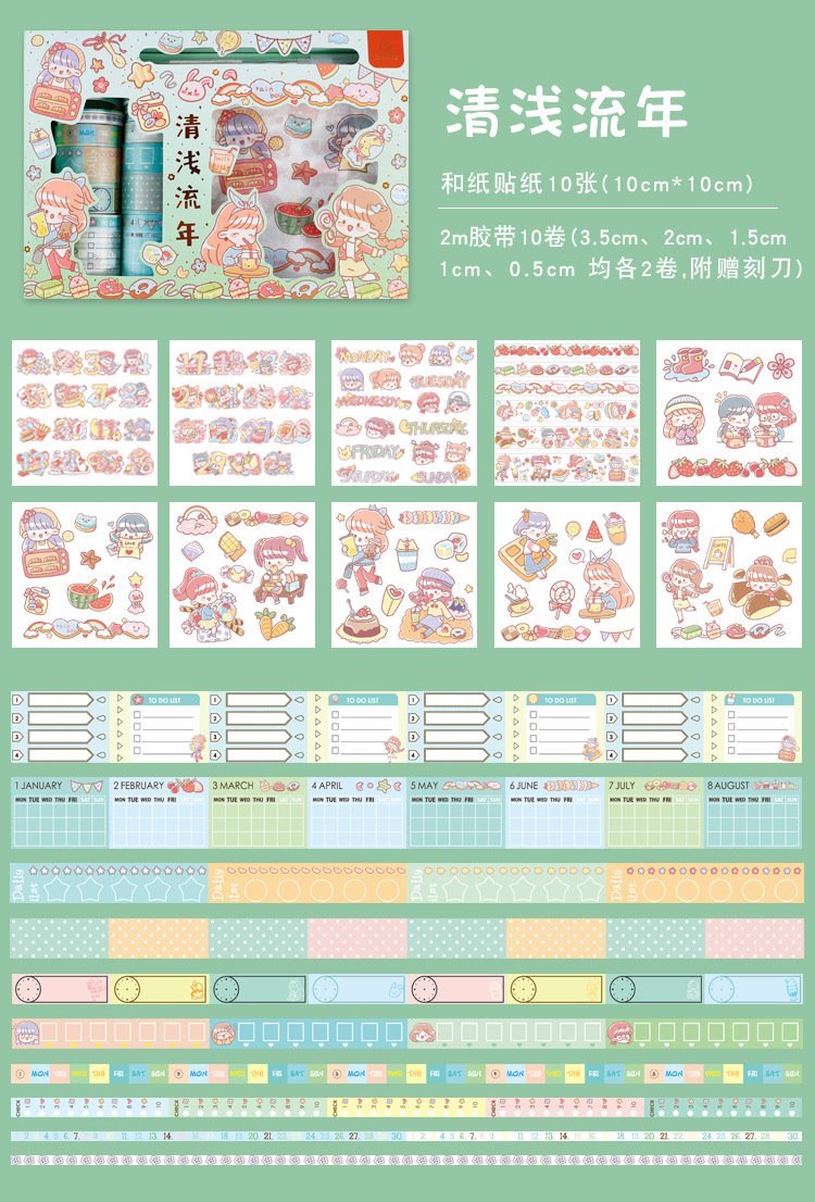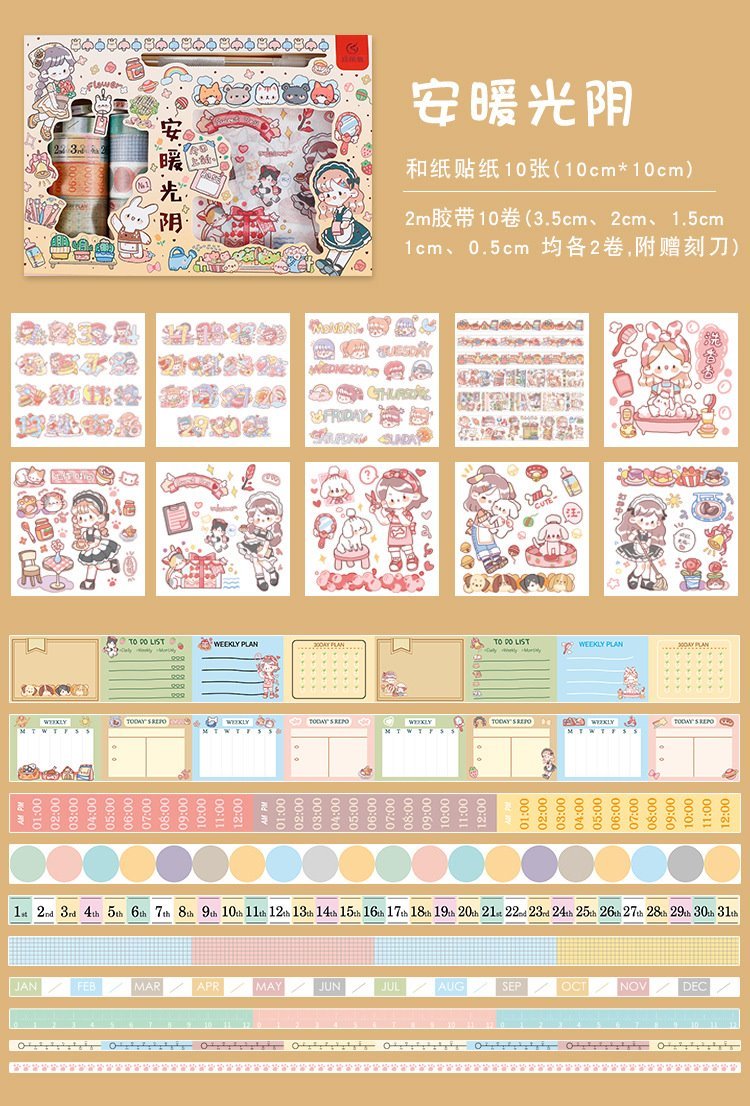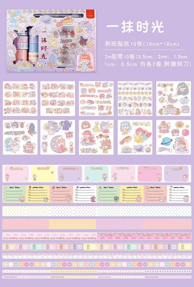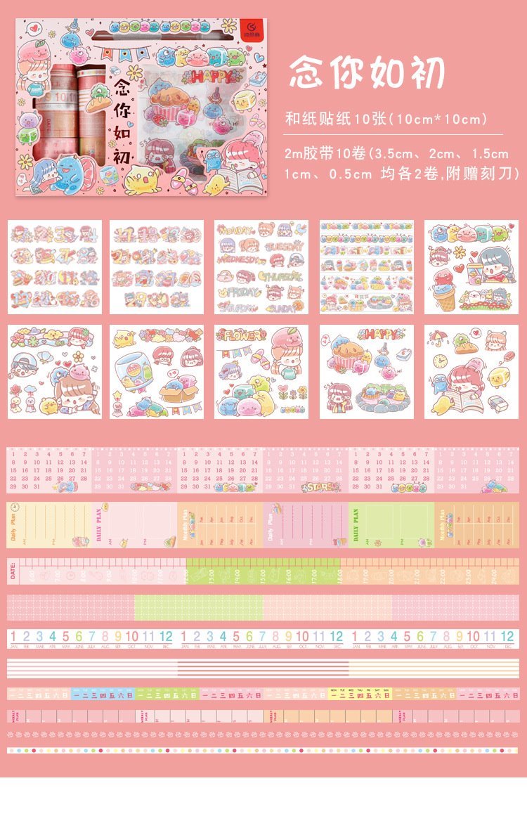 - 10 برگ استیکر- 14 حلقه چسب 2 متری- 1 عدد کاتر