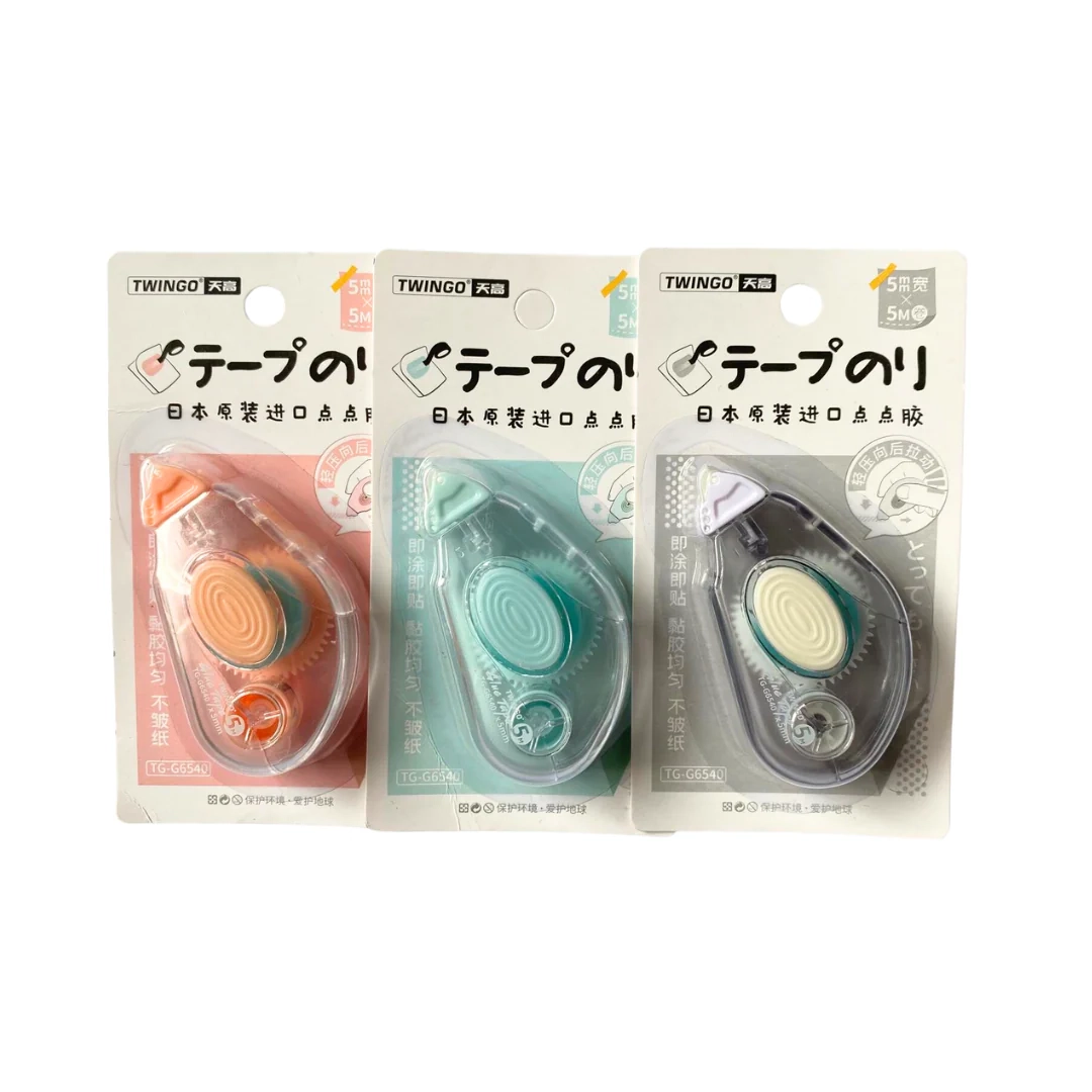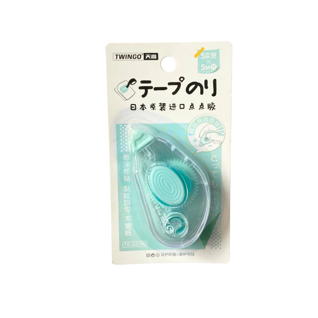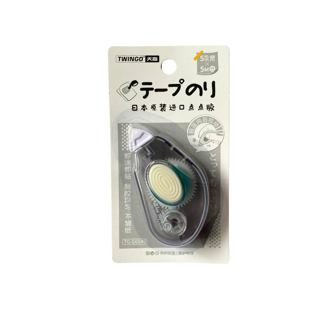 اندازه: ۶.۷ در ۳.۶ سانتیمترمحتویات: نوار چسب ۵ میلیمتر در ۵ مترجنس: پلاستیک، PET، چسب کاغذیقابلیت شارژ مجدد ندارددستورالعمل استفاده:نوک را به آرامی با زاویه حدود ۴۵ درجه روی سطح کاغذ فشار دهید. پس از اتمام کار، دوباره با زاویه ۹۰ درجه (عمود) فشار دهید تا استفاده از آن تمام شود.