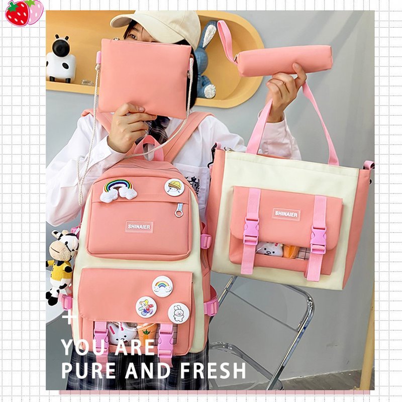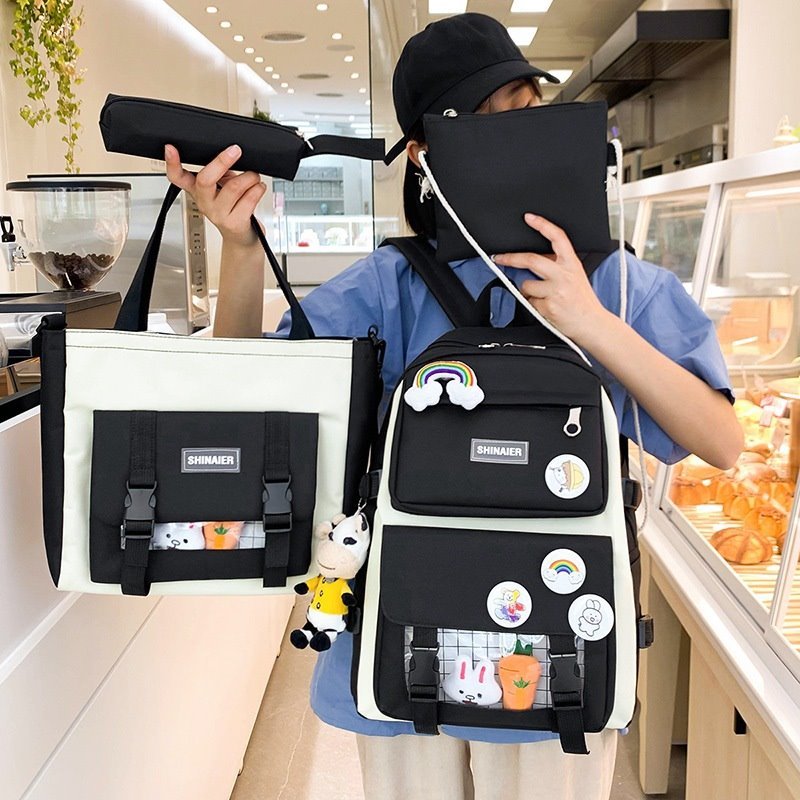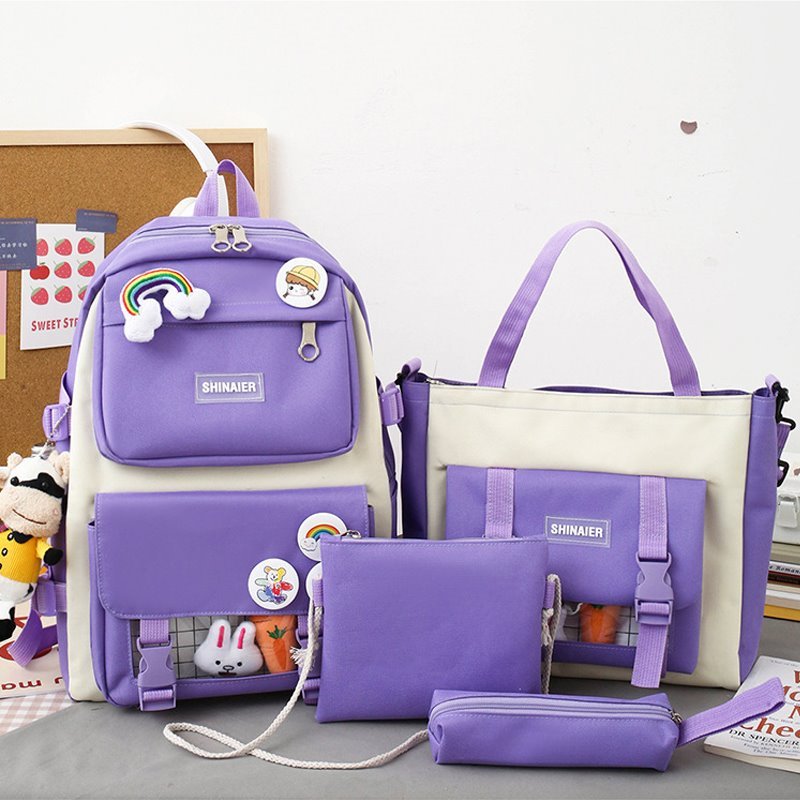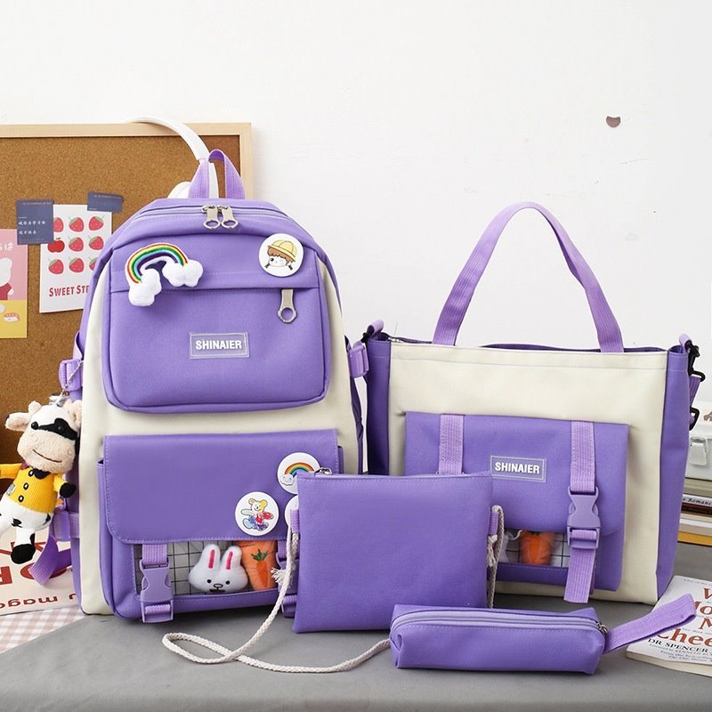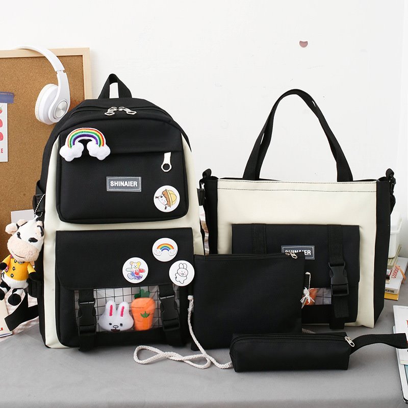 - 1 عدد کوله پشتی- 1 عدد کیف دوشی- 1 عدد کیف دوشی کوچک- 1 عدد جامدادی