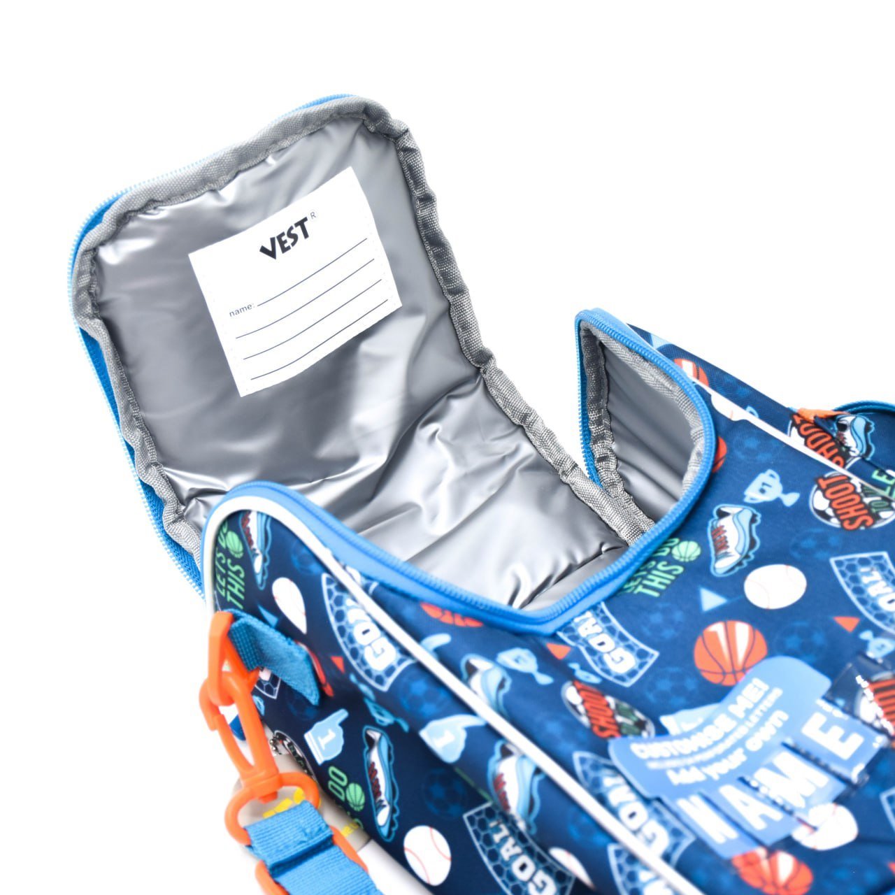 -دارای جای مخصوص اسم -دارای جای قمقمه از یک طرف-دارای برچسب اسم در داخل کیف-دارای جیب توری در داخل کیف-دارای بند قابل تنظیم