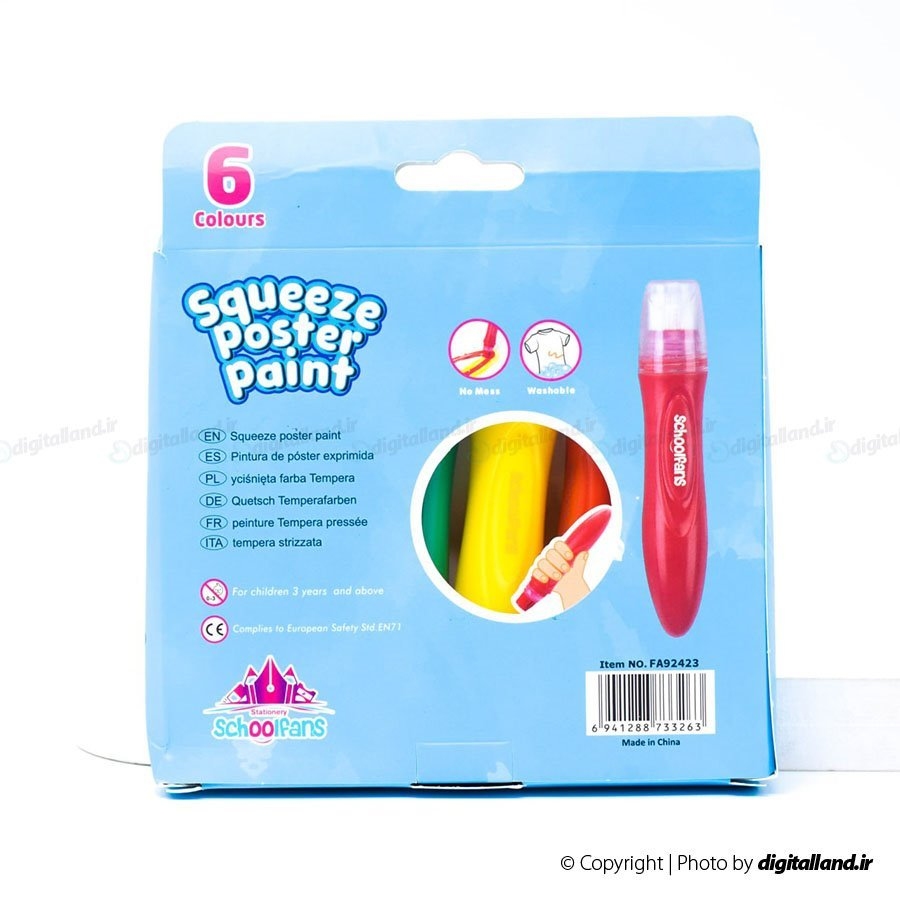 گواش قلمی 6 رنگ با نوک براش Schoolfans FA92423