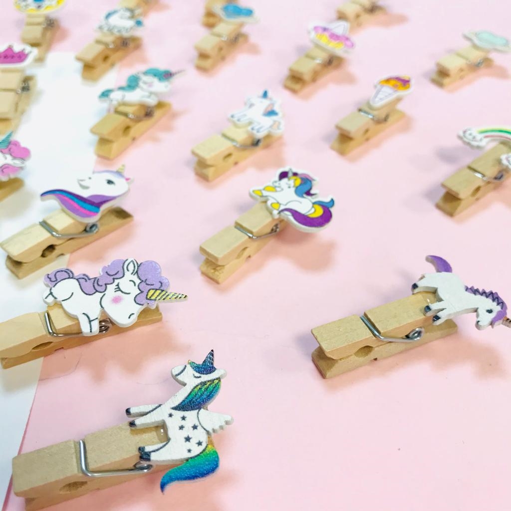گیره چوبی طرح یونیکورن و رنگین کمان
