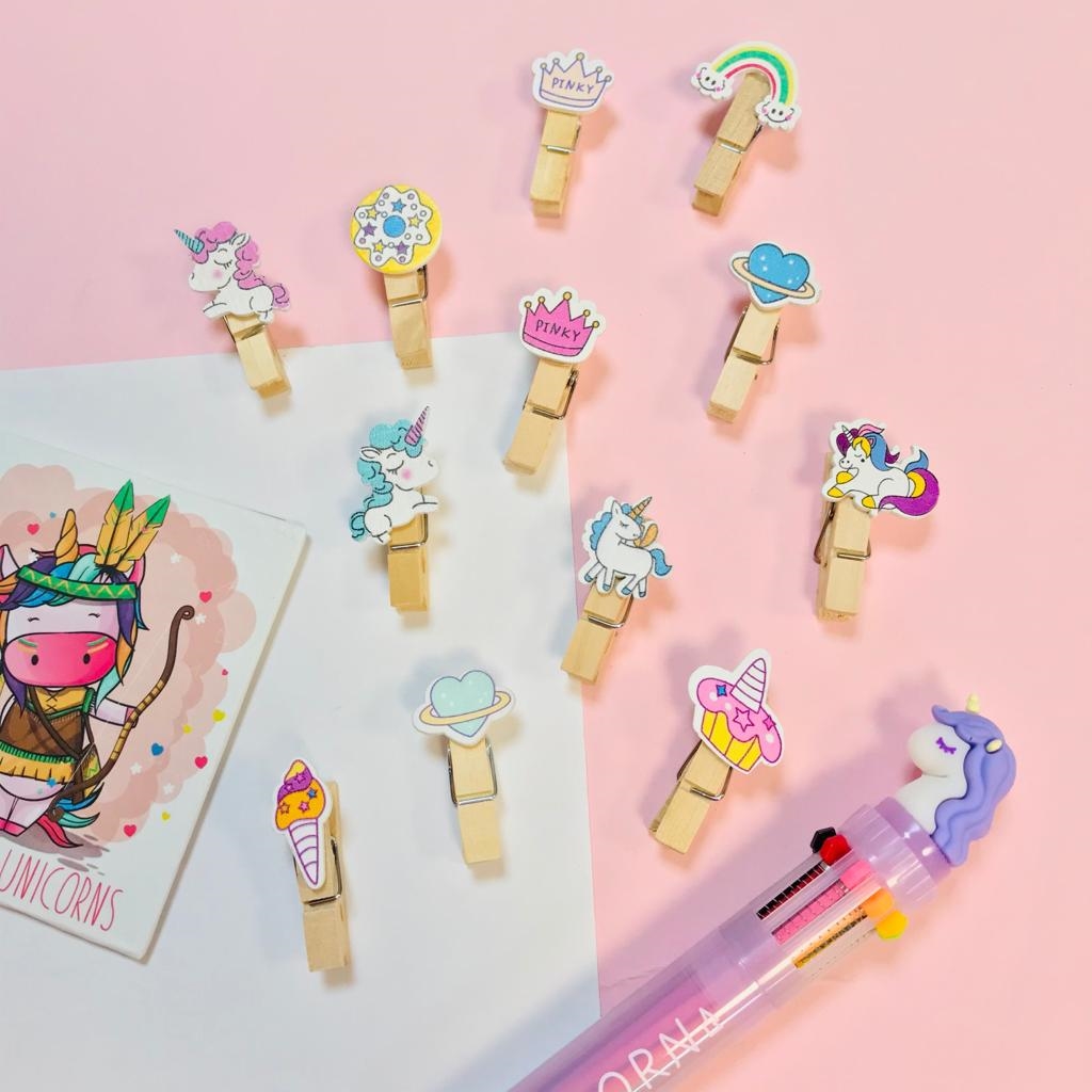 گیره چوبی طرح یونیکورن و قلب 2
